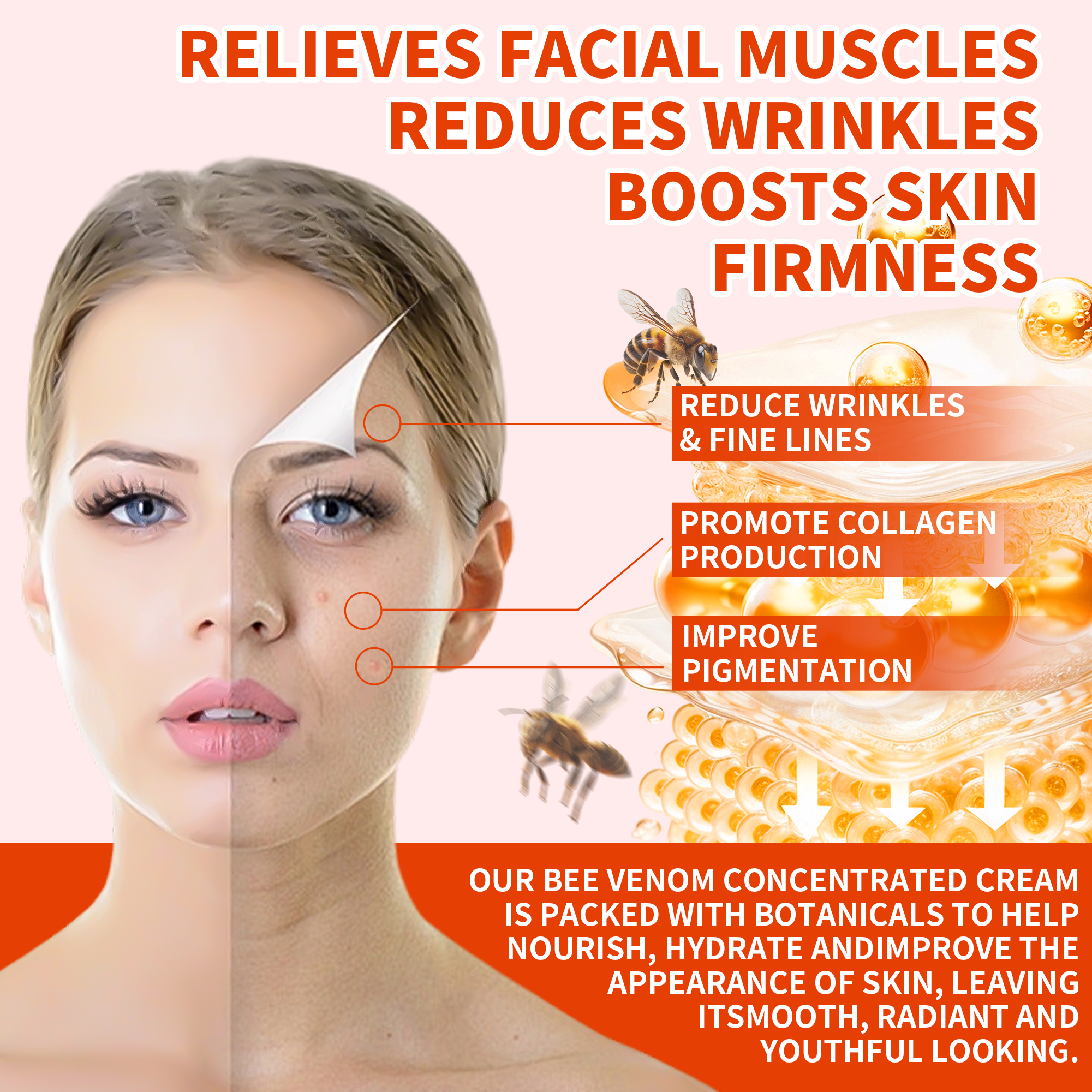 - Multi-Functional Care:As a versatile bee venom comprehensive cream,this nutrient-rich formula restores essential moisture, refines skin texture, and balances overall skin condition, making it the ultimate bee venom cream for skin health and radiance.