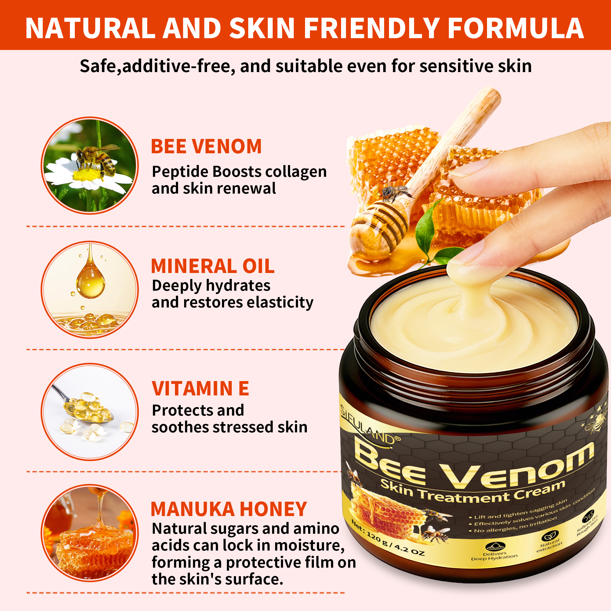 - Premium Bee Venom Formula:This bee venom cream is infused with pure natural bee venom extract and Manuka honey. Our synergistic blend of plant essences delivers active ingredients deep into the skin, free from artificial irritants.